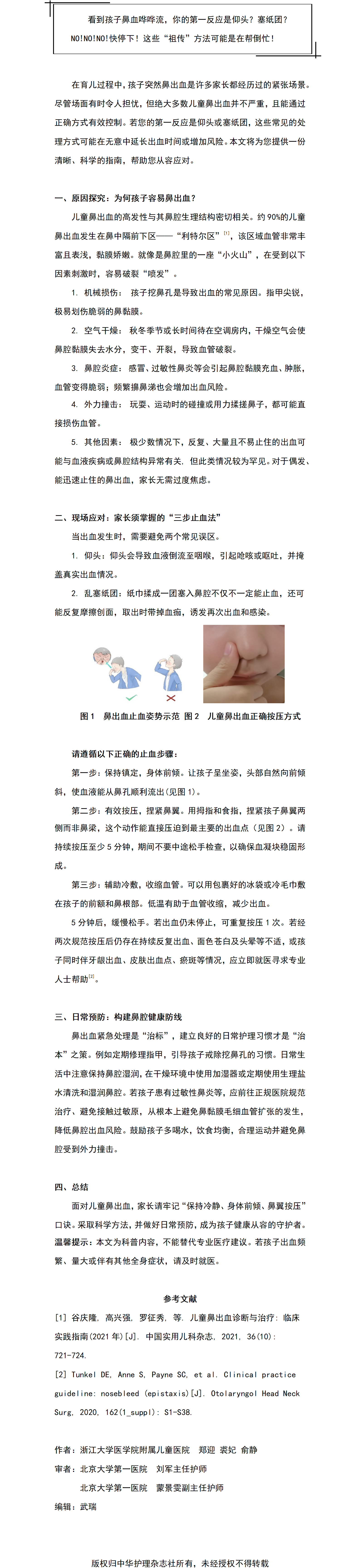儿童鼻出血,家长莫慌!这份“止血清单”请收好